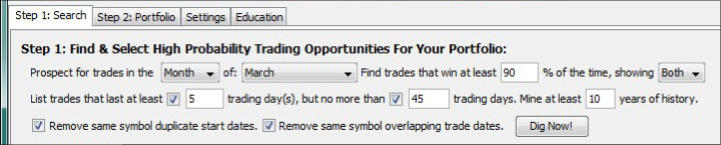 Figure A-1: A close-up screenshot of the allowable criteria that can be specified in TradeMiner.